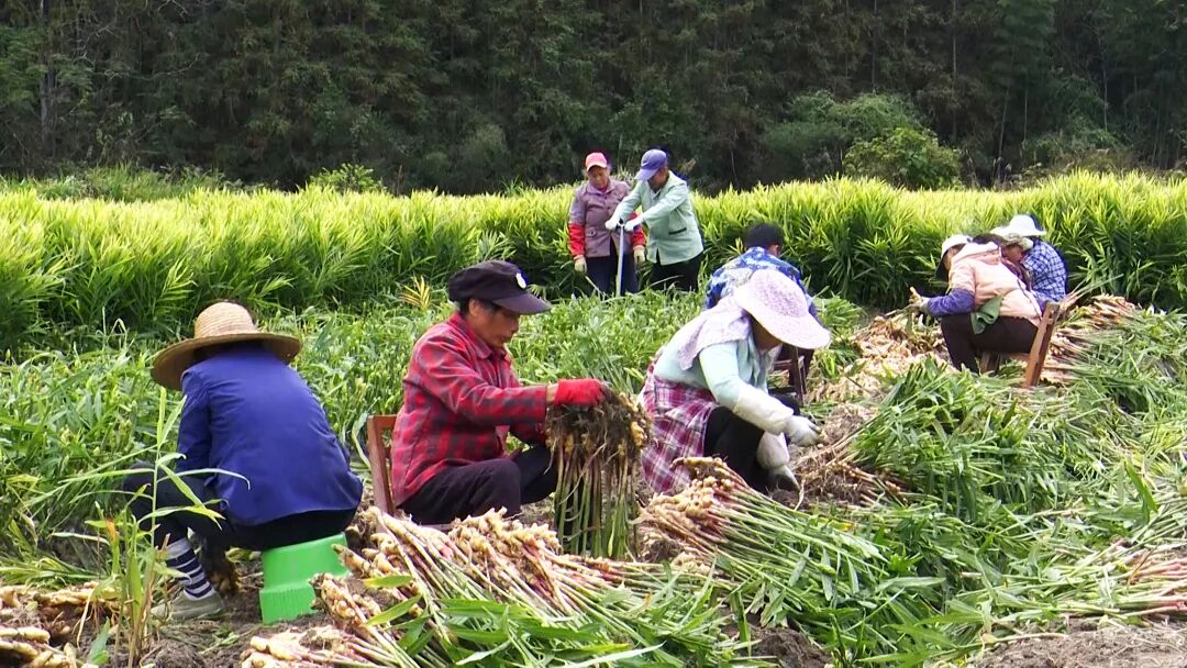 这片丰收的姜田,也成为了带动当地就业、促进村集体增收的“金疙瘩”。“我一天挣80元,老板有活就叫我们来这里干,近一点就更方便照顾得到家。”务工人员涂为凤说。